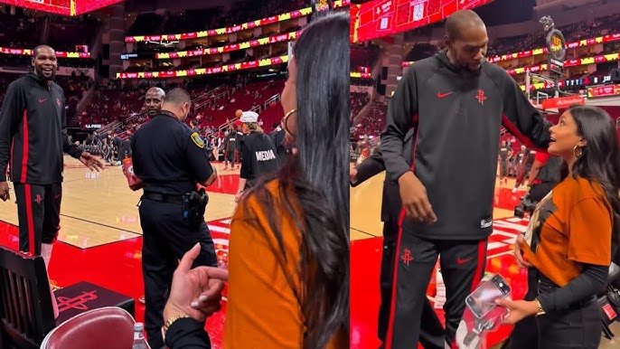 During the Houston Rockets matchup, Durant was visibly surprised and delighted when he spotted his old college friend Shabana courtside. She was wearing a custom T-shirt featuring a photo of the pair from their freshman year at Texas — a gesture that clearly resonated with Durant. In a rare display of emotion, he broke into a big smile as they hugged and posed for photos together. Dailymotion